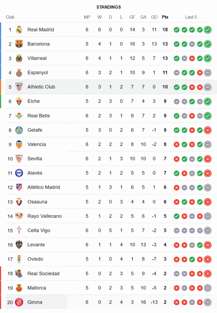 โปรแกรมใน ตารางบอล นัดต่อไป บิลเบาต้องบุกเยือนบียาร์เรอัล ก่อนมีคิวโหดในยูฟ่า แชมเปียนส์ลีกกับดอร์ทมุนด์ ขณะที่คิโรน่าจะได้เล่นในบ้านเจอกับเอสปันญอลและบาเลนเซีย ซึ่งถือเป็นแมตช์ชี้ชะตาสำคัญของพวกเขา