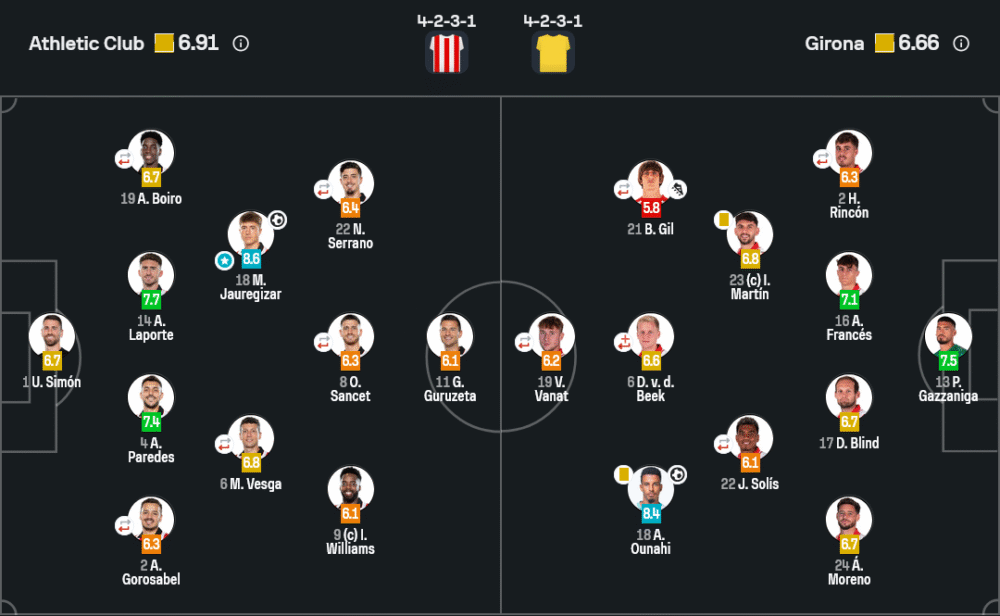 บิลเบาเน้นครองบอลด้วยสัดส่วนมากถึง 66% ใช้การต่อบอลสั้นควบคุมจังหวะกลางสนาม การเล่นเกมรุกเน้นเปิดพื้นที่ให้ ฆัวเรกิซาร์ และ อินญากิ วิลเลียมส์ สร้างสรรค์โอกาส ขณะที่เกมรับใช้ลาปอร์กต์คุมแดนหลังอย่างแน่นหนา ด้านคิโรน่าเลือกวางแท็กติกสวนกลับเร็ว อาศัยสปีดของอูนาอีและความแข็งแกร่งของฟาน เดอ บีค แต่ข้อเสียคือความต่อเนื่องไม่มากพอ หากเทียบเชิง วิเคราะห์บอล บิลเบาเหนือกว่าในเรื่องการครองบอลและความแม่นยำ แต่คิโรน่ามีทีเด็ดในเกมสวนกลับที่สร้างความกดดันได้เสมอ