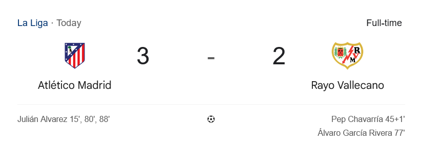 ศึก ลาลีกา สเปน ที่ว่านต๋า เมโทรโปลิตาโน่ เป็นอีกหนึ่งค่ำคืนที่แฟนบอลได้ลุ้นกันแบบใจหายใจคว่ำ เมื่อ แอตเลติโก้ มาดริด เปิดรังเฉือนชนะ ราโย่ บาเยกาโน่ ไปแบบสุดมัน 3-2 จากผลงานแฮตทริกของฮาเวเรซ (Julián Álvarez) เกมนี้คือบทพิสูจน์สปิริตของลูกทีมดิเอโก้ ซิเมโอเน่ ที่ไม่ยอมแพ้จนสามารถคว้า 3 แต้มเต็มได้สำเร็จ ส่งผลต่อการลุ้นพื้นที่บนตารางอย่างมีนัยสำคัญ แฟนบอลเกาะติดทุกจังหวะผ่าน ผลบอลสด บ้านกีฬาแบบตาต่อตา ฟันต่อฟัน