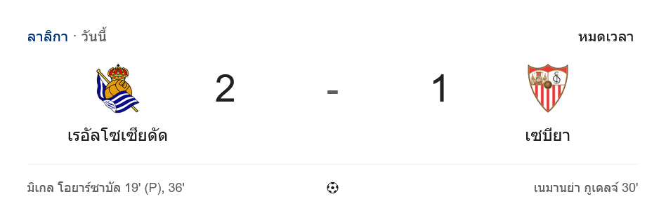 ครึ่งหลังกลายเป็นเกมรับที่เหนียวแน่นของเจ้าบ้าน ขณะที่เซบีย่าพยายามเปิดเกมบุกหนัก หวังตีเสมอให้ได้ แต่จังหวะสุดท้ายขาดความเฉียบคม ด้านแนวรับของโซเซียดาดยืนระยะได้ดีเยี่ยม ทำให้จบ 90 นาที เรอัล โซเซียดาด คว้าชัยสำคัญไป 2-1
