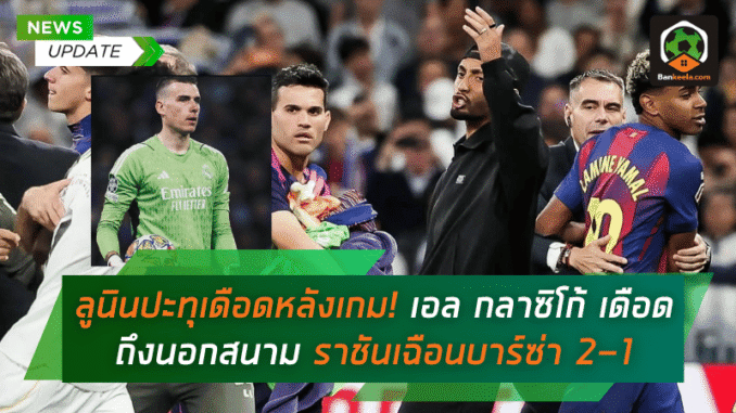 บรรยากาศของเกม เอล กลาซิโก้ เมื่อคืนวันอาทิตย์ที่ 26 ตุลาคม กลายเป็นไฟที่ปะทุแรงกว่าที่ใครคาดคิด หลังจบเกมที่สนามซานติอาโก้ เบร์นาเบว ซึ่ง เรอัล มาดริด เปิดรังเชือด บาร์เซโลน่า ไปแบบสุดเดือด 2-1 มีเหตุการณ์ดราม่าร้อนฉ่าตามมาเมื่อ อังเดร ลูนิน นายด่านมือสองของราชันชุดขาว ถูกผู้ตัดสินควักใบแดงไล่ออกจากสนาม แม้การแข่งขันจะจบลงไปแล้วก็ตาม