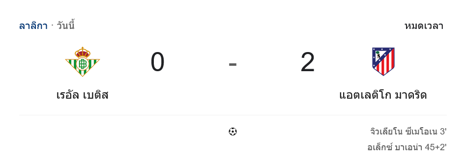 จาก : ผลบอลสด ลาลิกา ระหว่าง เรอัล เบติส 0-2 แอตเลติโก้ มาดริด วันนี้ 28/10/68 – บ้านกีฬา
