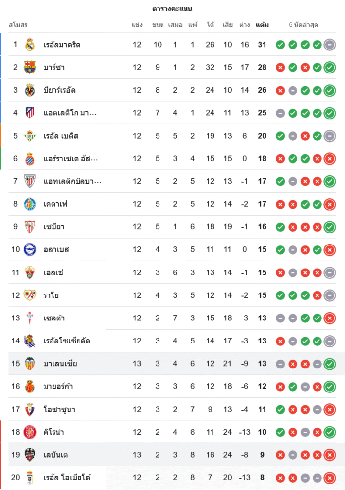 📌 สถานการณ์ในตารางคะแนนลาลีกา