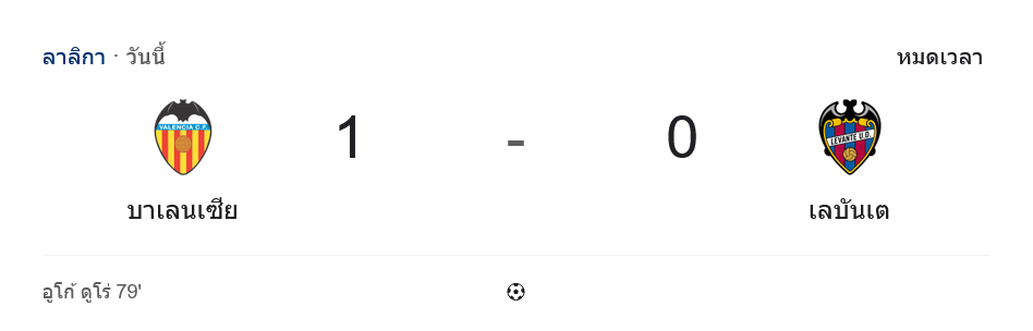 ลาลีกา เกมนี้ที่เมสตาย่า บ้านกีฬา ขอบอกว่าอึดอัดตั้งแต่นาทีแรกจนจบ เพราะทั้ง บาเลนเซีย กับ เลบานเต้ ต่างอยู่โซนล่างของตาราง แต้มทุกเม็ดคือชีวิตจริงๆ ฝั่งเจ้าถิ่นได้กำลังใจเต็มสนาม ส่วนทีมเยือนมาในสไตล์เหนียวแน่นมีของ หวังแบ่งแต้มกลับบ้านให้ได้ ซึ่งจากรูปเกมและตัวเลขบนหน้าเว็บไซต์สาย ผลบอลสด บอกเลยว่าค้างคาวทำการบ้านมาดีมาก