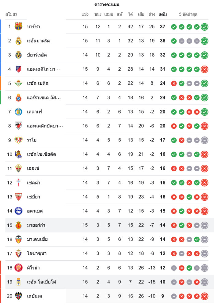 📌 สถานการณ์ในตารางคะแนนลาลีกา