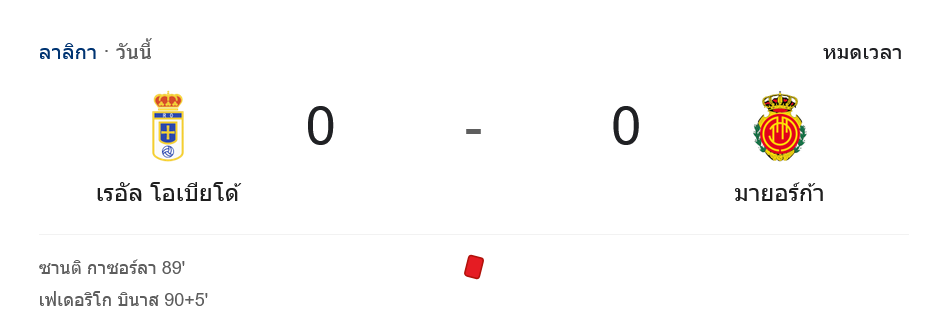 ศึกลา ลีกา นัดนี้ที่สนามคาร์ลอส ตาร์ติเอเร่ เรอัล โอเบียโด เปิดบ้านรับการมาเยือนของ มายอร์ก้า เกมจบลงด้วยสกอร์ 0-0 แต่ดีกรีความเดือดไม่แพ้คู่ไหนเมื่อเจ้าถิ่นโดนใบแดงถึงสองใบในช่วงท้ายเกม ทว่าได้ฟอร์มซูเปอร์เซฟของ อารอน เอสกันเดล ช่วยให้ทีมเก็บหนึ่งแต้มสำคัญต่อหน้าแฟนบอลบ้านตัวเอง แฟนบอลที่ตามเช็ก ผลบอลสด ตลอด 90 นาทีบอกเป็นเสียงเดียวกันว่า “โหด มันส์ ดราม่า” ครบทุกอารมณ์
