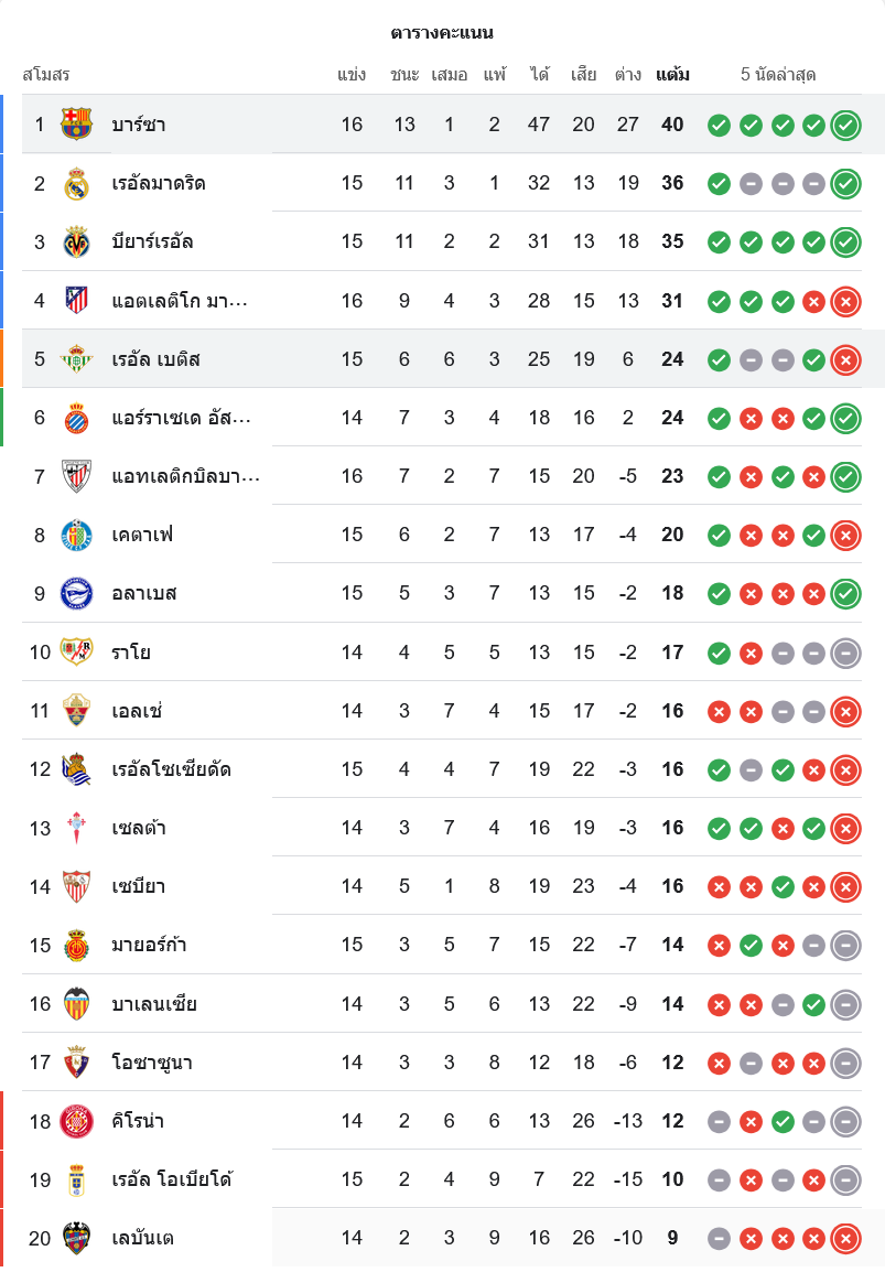 📌 สถานการณ์ในตารางคะแนนลาลีกา