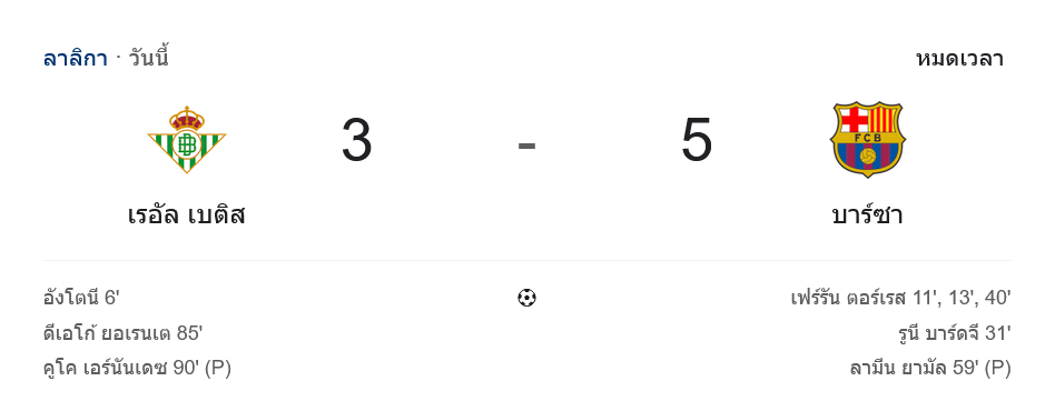 - ⚽ นาที 90 คริสเตียน เอร์นานเดซ เก็บบอลในเขตโทษซัดไม่เหลือ เบติสไล่มา 3-5