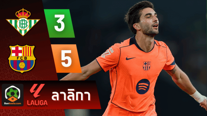 ที่เบนิโต้ บียามาริน เกมลาลีกาคืนนี้ เรอัล เบติส ของมานูเอล เปเยกรินี่ เปิดบ้านรับการมาเยือนของบาร์เซโลน่ายุค ฮานส์-ดีเตอร์ ฟลิค ศึกชิงสามแต้มสำคัญบนหัวตาราง โดย ผลบอลสด จบลงด้วยสกอร์โคตรมันส์ เบติสพ่ายต่อหน้ากองเชียร์ตัวเอง 3-5 จากแฮตทริกของเฟร์รัน ตอร์เรส บวกกับลูกยิงของรูนี่ บาร์ดก์ยี่ และจุดโทษของลามิน ยามาล ส่วนเจ้าถิ่นได้ประตูจาก อันโทนี, ดีเอโก้ ญอเรนเต และคริสเตียน เอร์นานเดซ เกมนี้เปิดหน้าแลกหมัดกันตลอด 90 นาทีแบบไม่มีกั๊ก