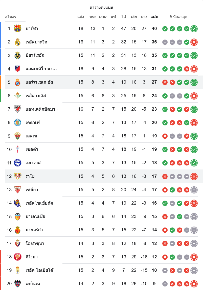 📌 สถานการณ์ในตารางคะแนนลาลีกา