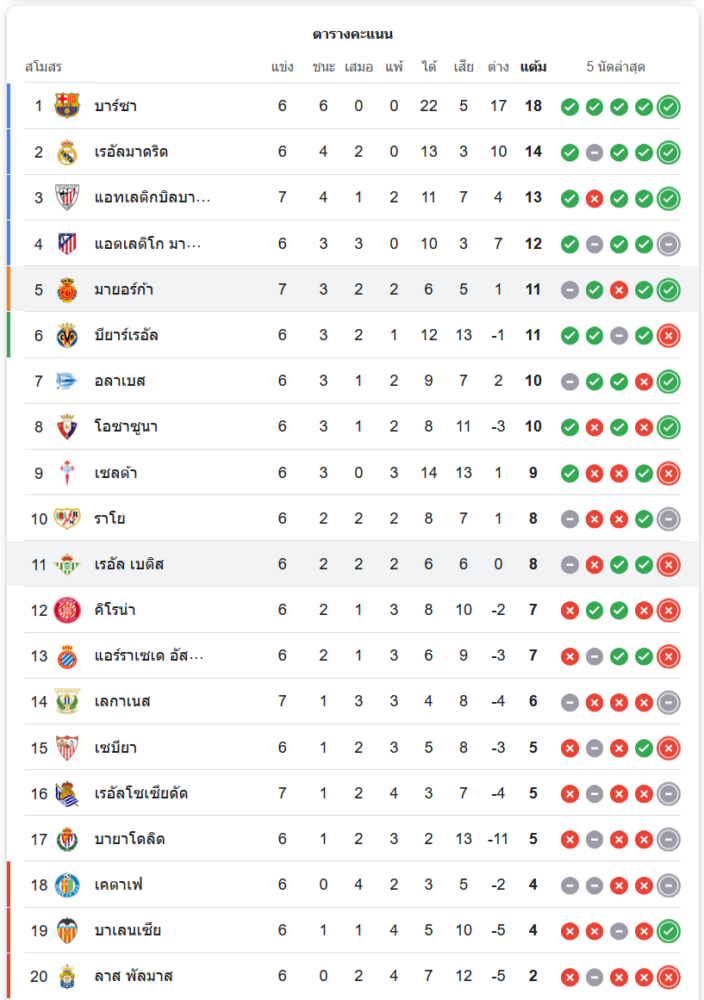 สถานการณ์ในตารางคะแนน: มายอร์ก้าขยับขึ้นที่ 5!
