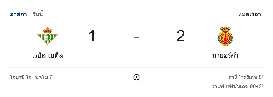 ไฮไลท์บอลลาลิกา 2024 เรอัล เบติส 1-2 มายอร์ก้า วันนี้ 24/9/67 – บ้านกีฬา (bankeela1.com)
