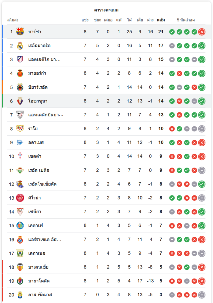 จากชัยชนะในนัดนี้ โอซาซูน่า ขยับขึ้นมาอยู่อันดับที่ 6 ของตารางลาลิกา 2024 โดยมี 14 คะแนน จาก 8 นัด ส่วน บาร์เซโลน่า ยังคงนำเป็นจ่าฝูงด้วย 21 คะแนน จาก 8 นัด แต่อาจถูก เรอัล มาดริด ไล่ตามมาได้ในนัดถัดไป