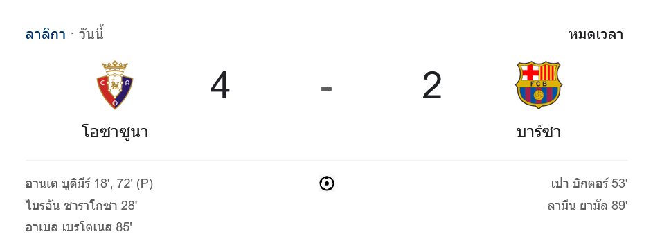 ไฮไลท์บอลลาลิกา 2024 โอซาซูน่า 4-2 บาร์เซโลน่า วันนี้ 29/9/67 – บ้านกีฬา (bankeela1.com)