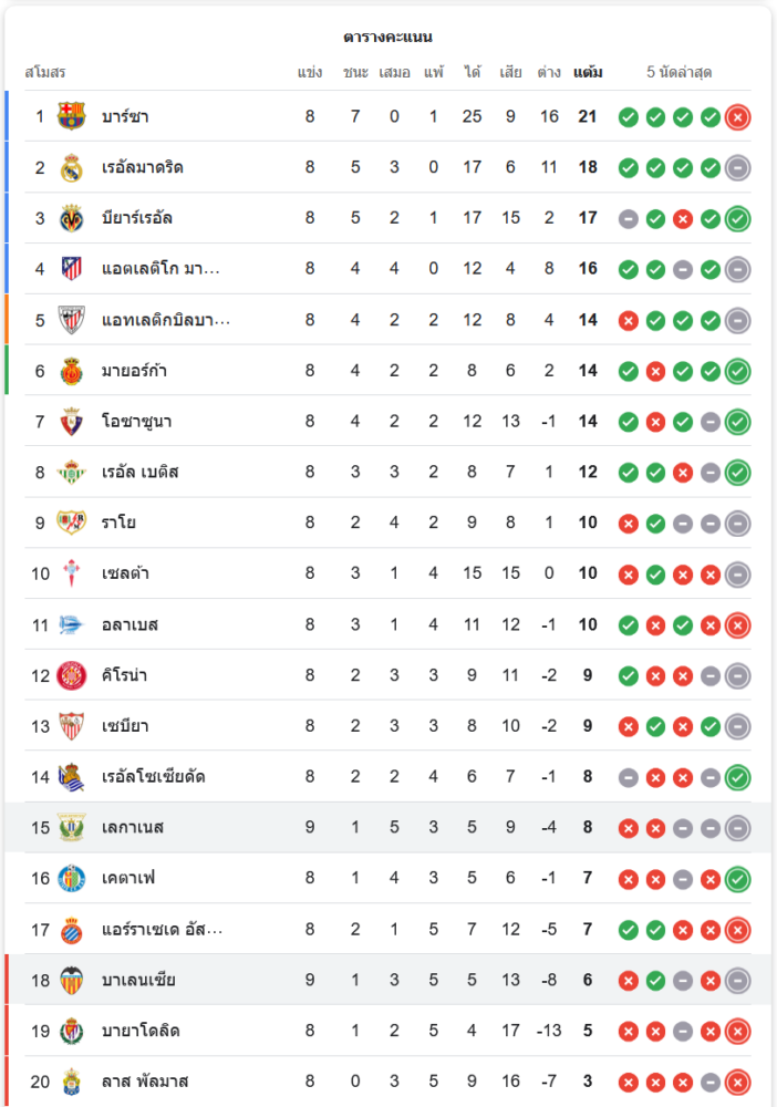 สถานการณ์ในตารางคะแนน