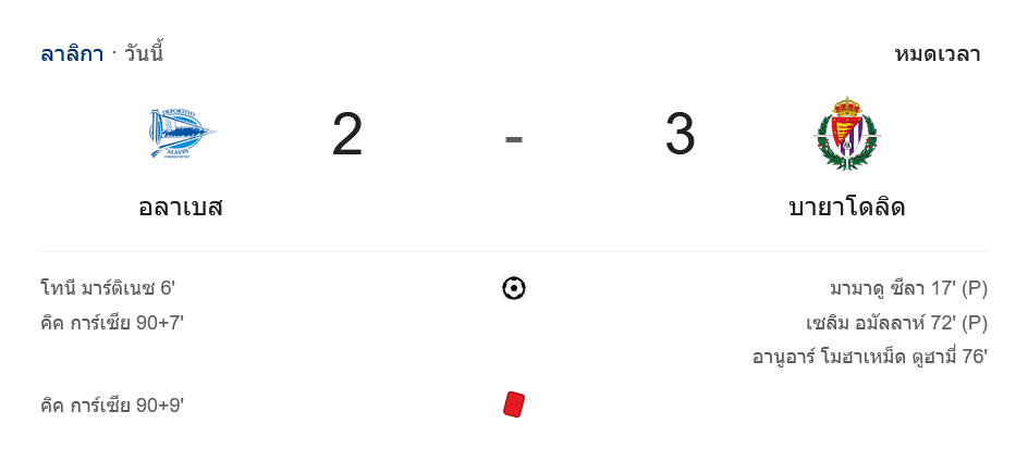 - ⚽ 72′ เซลิม อมาลลาห์ (บายาโดลิด) ยิงจุดโทษขึ้นนำ 2-1