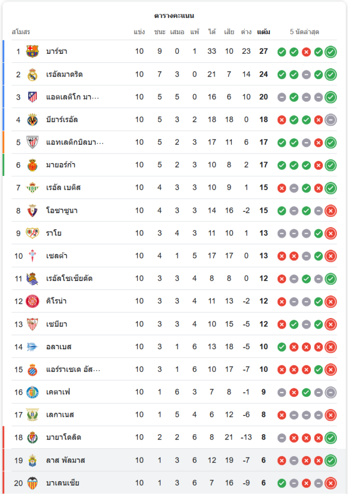 สำหรับ ลาส พัลมาส พวกเขายังคงต้องสู้ในนัดถัดไปเพื่อต่อสู้กับการตกชั้น ขณะที่ บาเลนเซีย ก็ต้องเตรียมพร้อมแก้เกมในนัดหน้าเพื่อหวังจะหลุดพ้นจากโซนอันตรายนี้