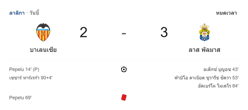 บาเลนเซีย พ่ายคาบ้านต่อ ลาส พัลมาส 2-3 ในศึก ลาลีกา 2024 สุดมันส์! เปเปลู โดนใบแดง เกมดุเดือดสุดขีด