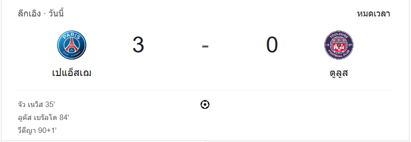 จบเกม ปารีส แซงต์ แชร์กแมง ชนะ ตูลูส 3-0