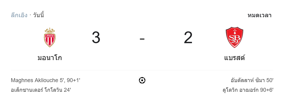 จาก : ผลบอลสด ลีกเอิง ฝรั่งเศส 2024 ระหว่าง โมนาโก 3-2 แบรสต์ วันนี้ 23/11/67 – บ้านกีฬา