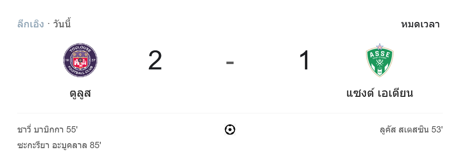 • ⚽ นาทีที่ 85: ซัคคาเรีย อาบูคลาล ยิงประตูชัยให้ตูลูส