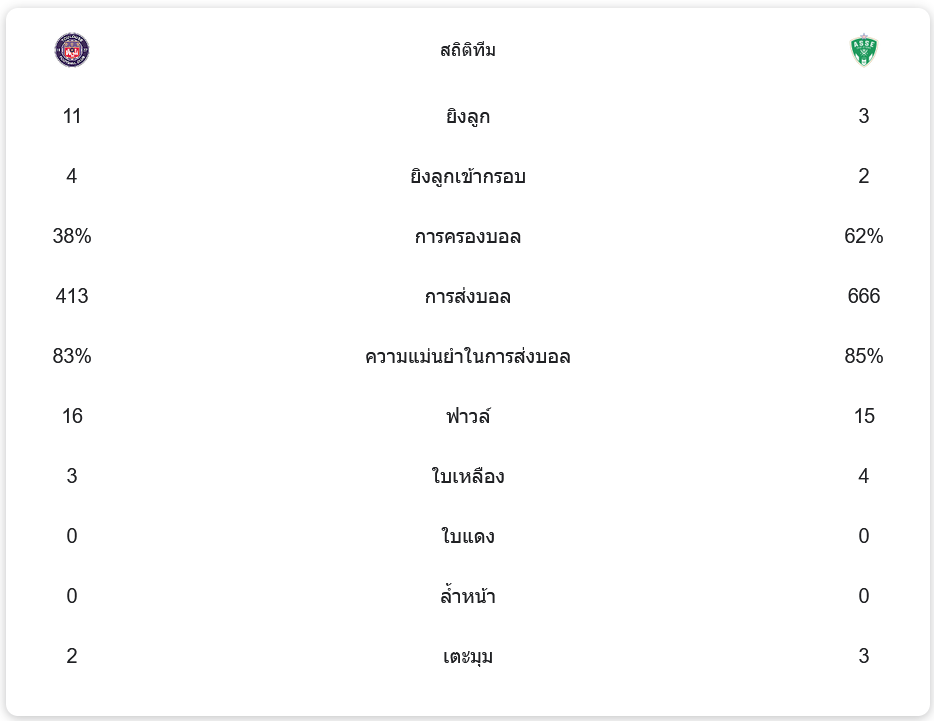 แซงต์ เอเตียน ครองบอล 62% และส่งบอลสำเร็จถึง 666 ครั้ง แต่มีโอกาสยิงเพียง 3 ครั้ง ขณะที่ตูลูสครองบอลเพียง 38% แต่มีโอกาสยิง 11 ครั้ง และยิงเข้ากรอบถึง 4 ครั้ง แสดงให้เห็นถึงประสิทธิภาพในเกมรุกของตูลูส