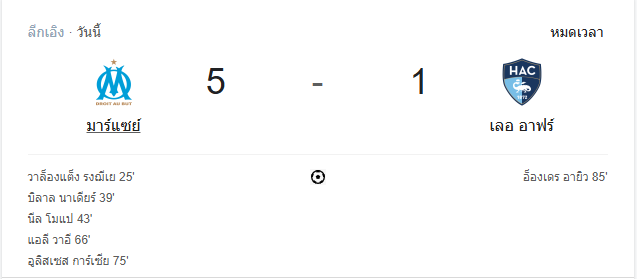 การแข่งขันที่สนามบ้านของโอลิมปิก มาร์กเซย เต็มไปด้วยความดุเดือดตั้งแต่นาทีแรก ผลบอลสด รายงานเกมที่มาร์กเซยโชว์ฟอร์มสุดร้อนแรง ไล่ถล่มเลอ อาฟร์ ด้วยสกอร์ขาดลอย 5-1 ประตู การแข่งขันนี้เต็มไปด้วยการทำประตูที่หลากหลายและความพยายามของทีมเยือนที่ไม่ยอมแพ้