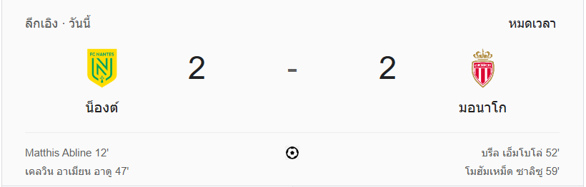 นาทีที่ 95: จบเกม น็องต์เสมอกับโมนาโก 2-2