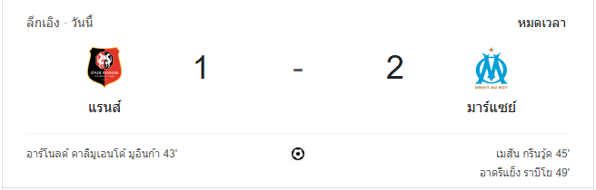 จบครึ่งแรก: แรนส์ 1-1 มาร์กเซย