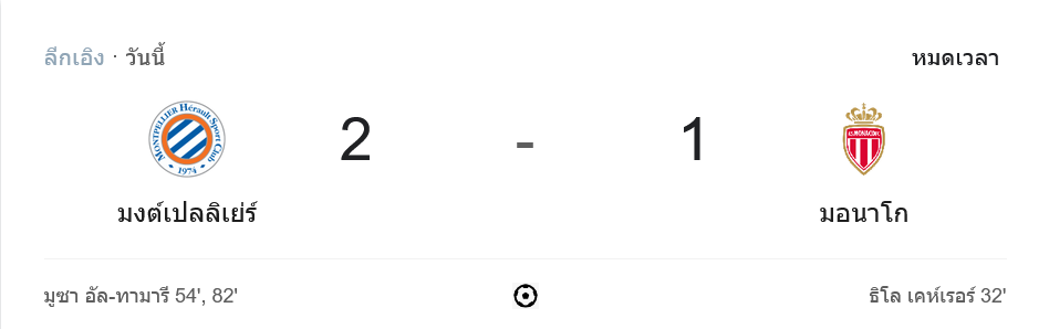 บ้านผลบอล สรุปหลังเกม มงต์เปลลิเย่ร์ พลิกแซงชนะ โมนาโก 2-1 สุดมันส์ ศึกลีกเอิง ฝรั่งเศส 2024