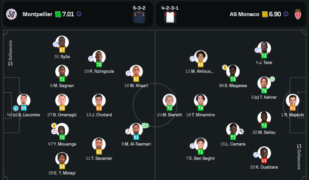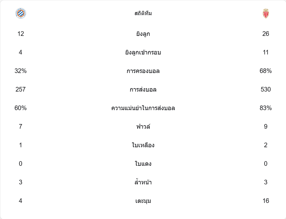แม้ว่า โมนาโก จะครองบอลได้ถึง 68% และมีโอกาสยิงถึง 26 ครั้ง แต่ความแม่นยำในการส่งบอลและจังหวะตัดสินในกรอบเขตโทษยังเป็นจุดอ่อน ขณะที่ มงต์เปลลิเย่ร์ มีโอกาสยิง 12 ครั้ง โดยเข้ากรอบ 4 ครั้งและสามารถเปลี่ยนเป็นประตูได้ถึง 2 ลูก