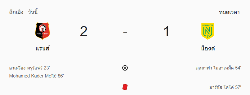 - จบการแข่งขัน: แรนส์เปิดบ้านเฉือนชนะน็องต์ 2-1 แบบสุดมันส์!