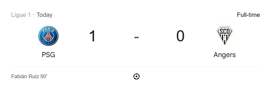 เปิดฉากมาไม่นาน นาที 50 เปแอสเชปลดล็อกสำเร็จจาก ฟาเบียน รุยซ์ ที่สอดขึ้นมาซัดเต็มข้อบอลพุ่งเสียบเสาอย่างเฉียบขาด ส่งเจ้าบ้านนำ 1-0 หลังจากนั้นทีมของหลุยส์ เอ็นริเก้ยังคงโหมบุกต่อ แต่แนวรุกขาดความเฉียบคม ขณะที่อองเช่ร์แม้จะพยายามตอบโต้แต่แทบไม่มีโอกาสยิงตรงกรอบเลย สุดท้ายจบเกม เปแอสเชเฉือนชนะ 1-0 เก็บชัยสองนัดรวดในลีก