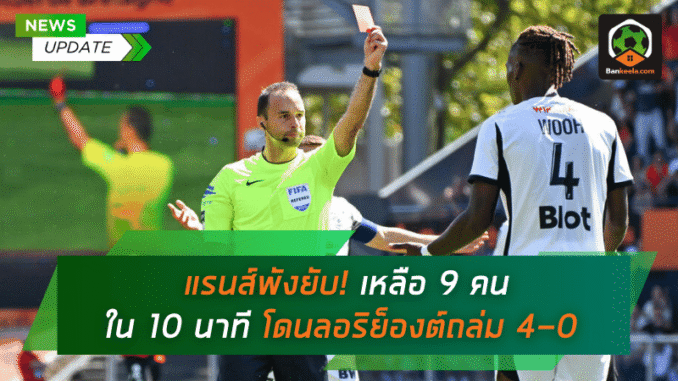 ศึก ลีก เอิง ฝรั่งเศส เมื่อคืนวันที่ 24 สิงหาคม กลายเป็นฝันร้ายของ แรนส์ อย่างแท้จริง หลังออกไปเยือน ลอริย็องต์ แล้วต้องเจอสถานการณ์สุดเลวร้าย เหลือผู้เล่นเพียง 9 คนตั้งแต่ยังไม่ครบ 10 นาทีแรก ก่อนโดนเจ้าถิ่นถล่มแบบไม่ไว้หน้า 4-0 พร้อมสร้างสถิติสุดอับอายที่ถูกบันทึกไว้ตั้งแต่ปี 1992