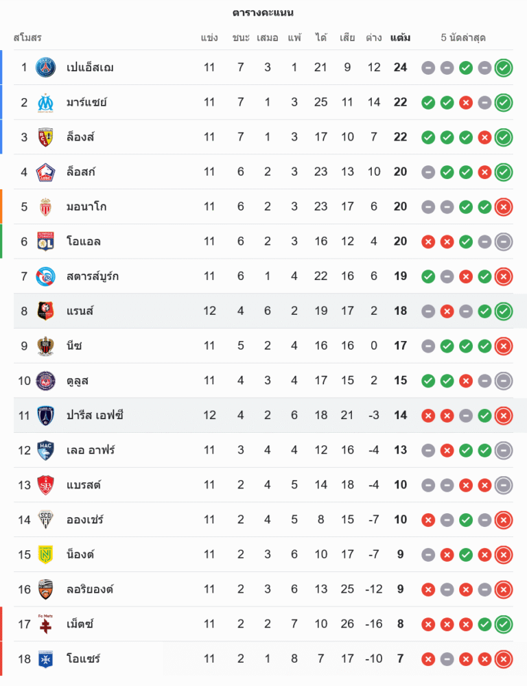 ส่วน ปารีส เอฟซี แพ้ในบ้านนัดนี้ทำให้หยุดอยู่ที่ 14 คะแนนจาก 12 นัด ประตูได้เสียติดลบเล็กน้อย (-3) ยังคงวนเวียนอยู่โซนกลางตาราง แต่หากไม่รีบแก้ปัญหาความเฉียบขาดในพื้นที่สุดท้าย มีโอกาสหล่นไปใกล้โซนท้ายตารางได้เหมือนกัน เพราะหลายทีมด้านล่างคะแนนเริ่มจี้มาเรื่อยๆ บ้านกีฬา มองว่าช่วงโปรแกรมถัดไปจะเป็นบททดสอบสำคัญว่าพวกเขาจะอยู่ครึ่งบนหรือครึ่งล่างของตารางในระยะยาว