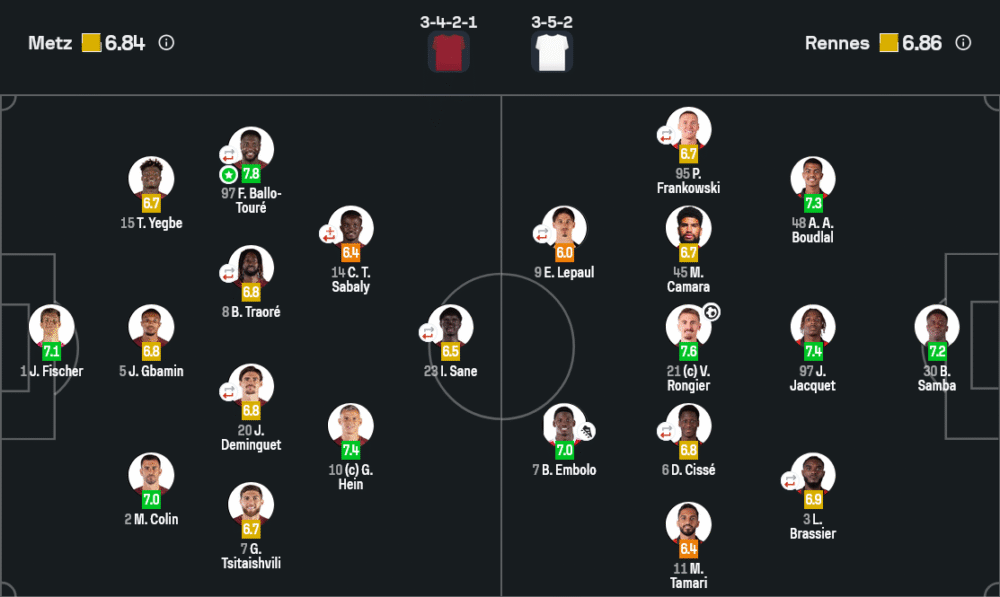 🟥 เม็ตซ์ (3-4-2-1) – เรตติ้งเฉลี่ย 6.84