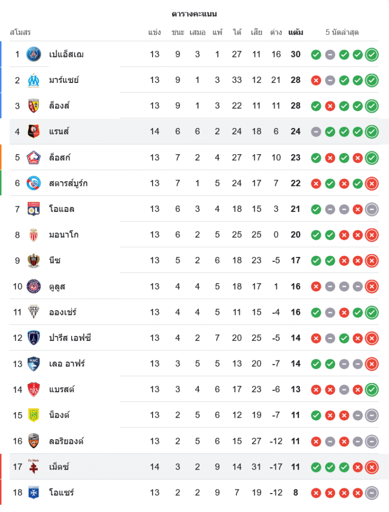 📌 สถานการณ์ในตารางคะแนนลีกเอิง