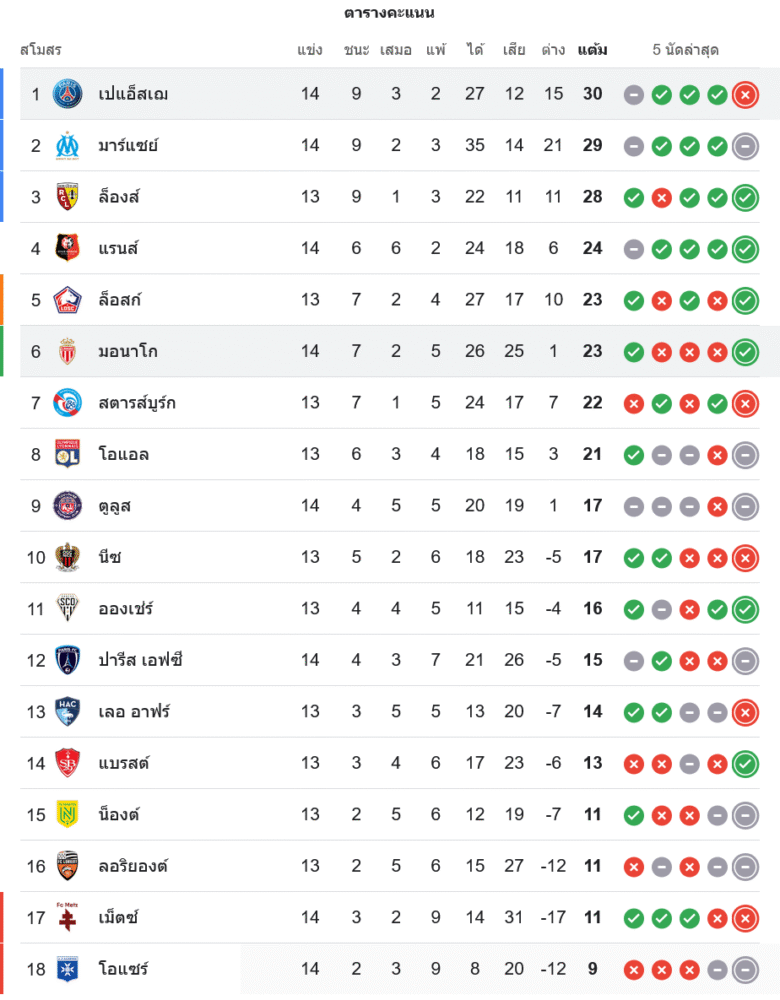 📈 สถานการณ์ในตารางคะแนนลีกเอิง ฝรั่งเศส