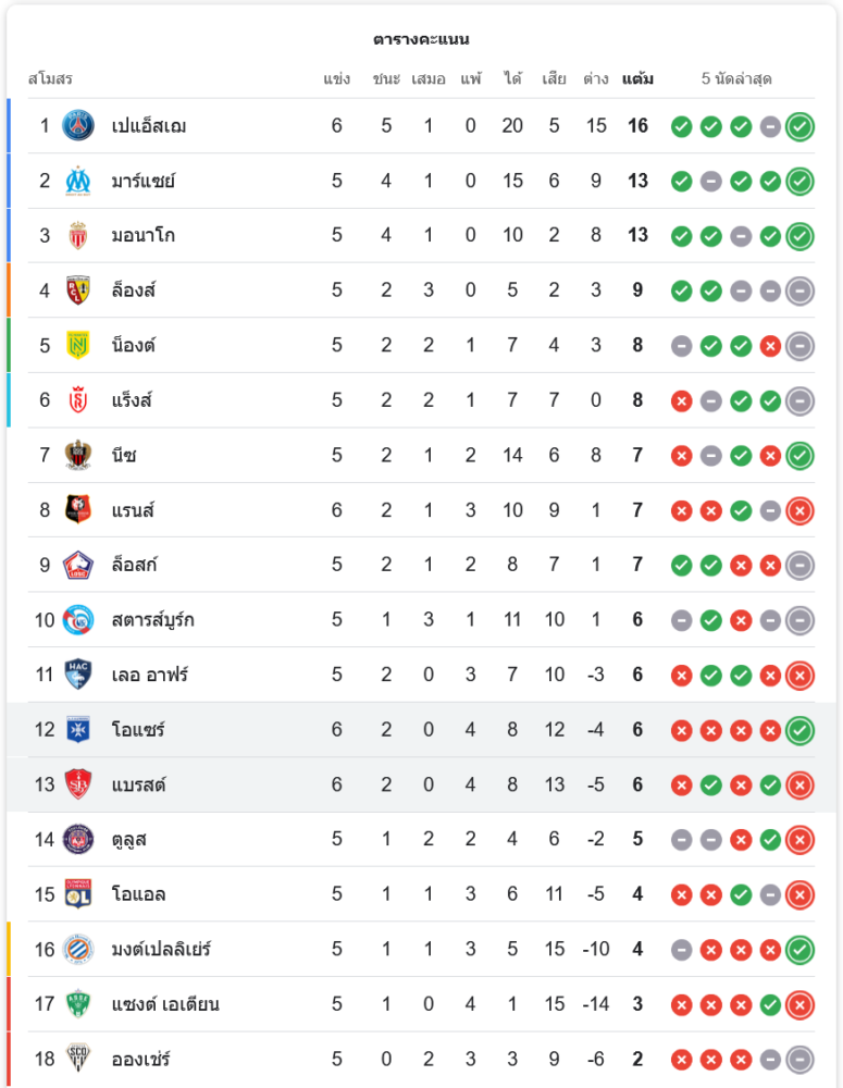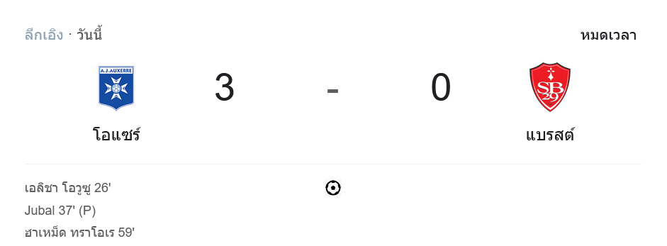 ผลบอลลีกเอิง ฝรั่งเศส 2024 ระหว่าง ทีมโอแซร์ vs ทีมแบรสต์ วันนี้ 28/9/67 ดูบอลย้อนหลัง คลิปไฮไลท์ ดูบอลลีกเอิง ฝรั่งเศส 2024