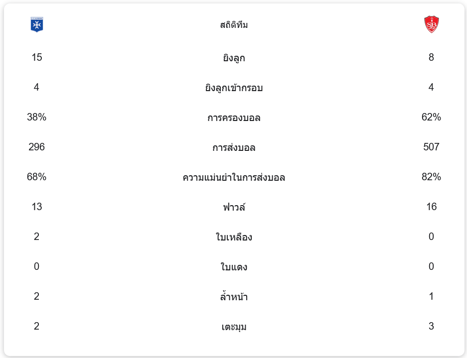 แม้ว่า แบรสต์ จะครองบอลได้มากกว่า 62% และมีการผ่านบอลถึง 507 ครั้ง แต่กลับไม่สามารถสร้างโอกาสทำประตูที่ชัดเจนได้ ขณะที่ โอแซร์ แม้ครองบอลน้อยกว่าเพียง 38% แต่กลับสร้างโอกาสยิงได้ถึง 15 ครั้ง และยิงเข้ากรอบ 4 ครั้ง จบเกมด้วยสกอร์ 3-0 แสดงให้เห็นถึงความเด็ดขาดในการโจมตีของโอแซร์