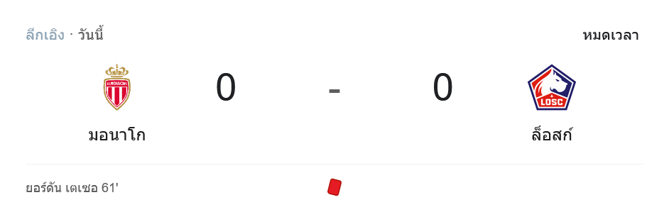 - 🟥 61′ จอร์แดน เตเซ (โมนาโก) โดนใบแดง
