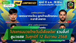 - โปรแกรมมวยไทยวันนี้เดือดจัด! รวมลิ้งก์ดูมวยสด วันศุกร์ที่ 12 ธันวาคม 2568