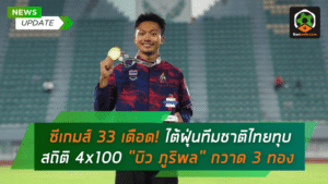 - ซีเกมส์ 33 เดือด! ไต้ฝุ่นทีมชาติไทยทุบสถิติ 4×100 “บิว ภูริพล” กวาด 3 ทอง จารึกหน้าประวัติศาสตร์