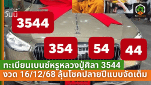 - คอหวยตาลุก! ทะเบียนเบนซ์หรูหลวงปู่ศิลา 3544 งวด 16/12/68 ลุ้นโชคปลายปีแบบจัดเต็มสายมู