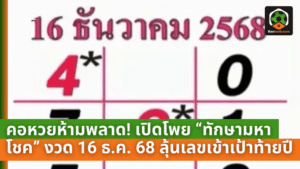 - คอหวยห้ามพลาด! เปิดโพย “ทักษามหาโชค” งวด 16 ธ.ค. 68 ลุ้นเลขเข้าเป้าโค้งท้ายปี
