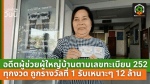 - อดีตผู้ช่วยผู้ใหญ่บ้านตามเลขทะเบียน 252 ทุกงวด ดวงเปรี้ยงถูกรางวัลที่ 1 รับเหนาะ ๆ 12 ล้าน