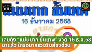 - คอหวยห้ามหลุด! เลขดัง “แม่นมาก ขั้นเทพ” งวด 16 ธ.ค. 68 มาแล้ว ใครอยากรวยรีบส่องด่วน