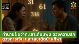 - ทำนายฝัน ฝันว่าทะเลาะกับแฟน ดวงความรัก ดวงการเงิน และเลขเด็ดบ้านกีฬา เปิดความหมายฝันแรงๆ ที่อาจเปลี่ยนดวงคุณได้กับบ้านกีฬา