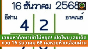 - คอหวยห้ามพลาด! เลขเด็ดปฏิทินคำชะโนด งวด 16 ธ.ค. 68 โค้งสุดท้ายแห่ส่องลุ้นโชครับปีใหม่