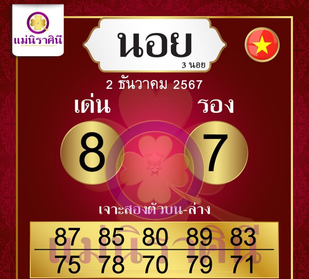 แม่นิราศินีงวดนี้ชูเลข เด่น 8 มาแรง รองด้วยเลข 7 โดยเฉพาะเลขสองตัวอย่าง 87 และ 85 ดูน่าสนใจเป็นพิเศษ ใครชื่นชอบแนวทางนี้ห้ามพลาดครับ!